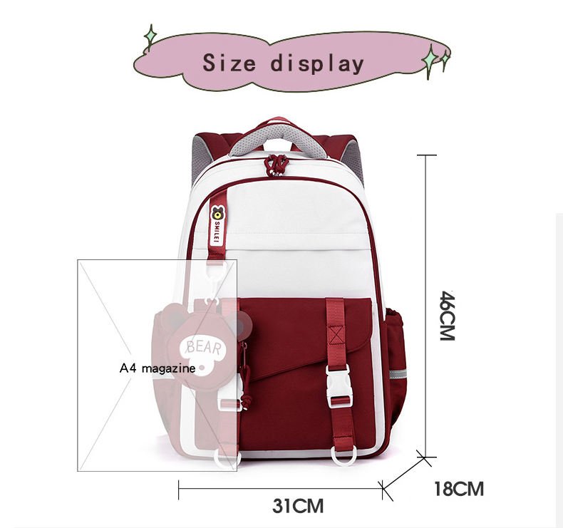 This adorable school bag is made for young girls who want style without compromising durability. Built from high-density polyester, it’s water-resistant and easy to clean. With its vibrant colors and kid-friendly design, it’s ideal for primary school children.